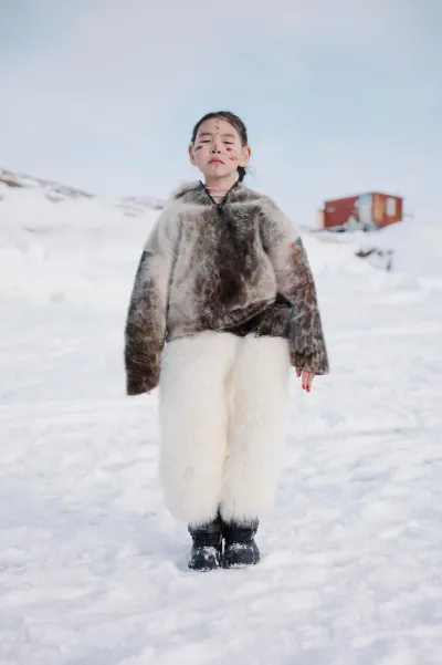 Jazbečev razstavljeni portret prikazuje mlado Inuitko Leono kmalu po tem, ko je sodelovala v starodavnem obrednem lovu na tjulnje v ledenem fjordu Uummannaq na severozahodu Grenlandije. Kot pojasnjuje Jazbec: »Za Leono je bil ta trenutek redka priložnost, da je bila priča tradicionalnemu načinu življenja in v njem sodelovala – načinu življenja, ki ga bo morda svet, ki se segreva, kmalu izbrisal.«