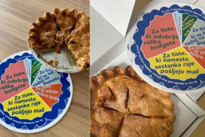 Vsako leto piti dodajo tudi posebno sporočilo, ki je bilo letos sploh humorno. »Pie chart je tako prikazal, komu je namenjen največji kos – tistim, ki potrjujejo velike budgete, in najmanjši za tiste – ki radi dajejo feedback 'Ni mi všeč',« so hudomušno razložili.