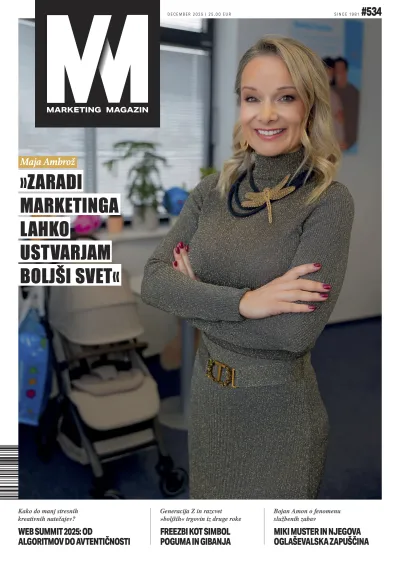 Na naslovnici je tokrat Maja Ambrož, vodja marketinga skupine Alfi Kids (Baby Center), ki razkriva, kako z »racionalno intuicijo« in pristnim razumevanjem staršev gradi zaupanje v eni od najbolj čustvenih izdelčnih kategorij.